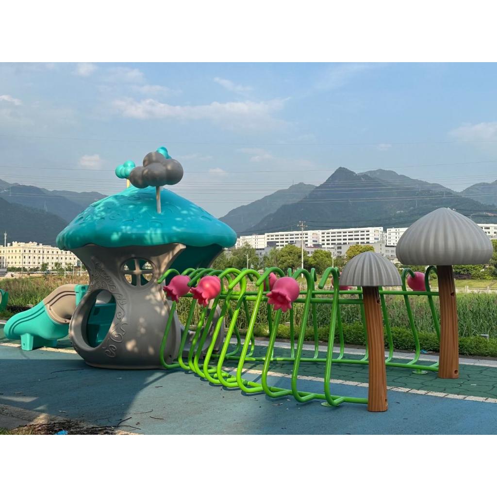 DOMEK SADOWNIKA Nr kat.: ws-050 Wymiary: 190 x 100 cm Powierzchnia zderzenia: 490 x 400 cm Wysokość: 151 cm Wysokość swobodnego upadku: 150 cm Konstrukcja: Stal malowana proszkowo Wykończenie: Płyta HDPE.Cena 16900,00