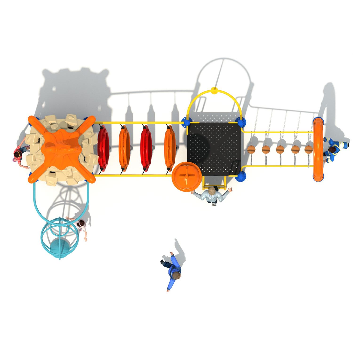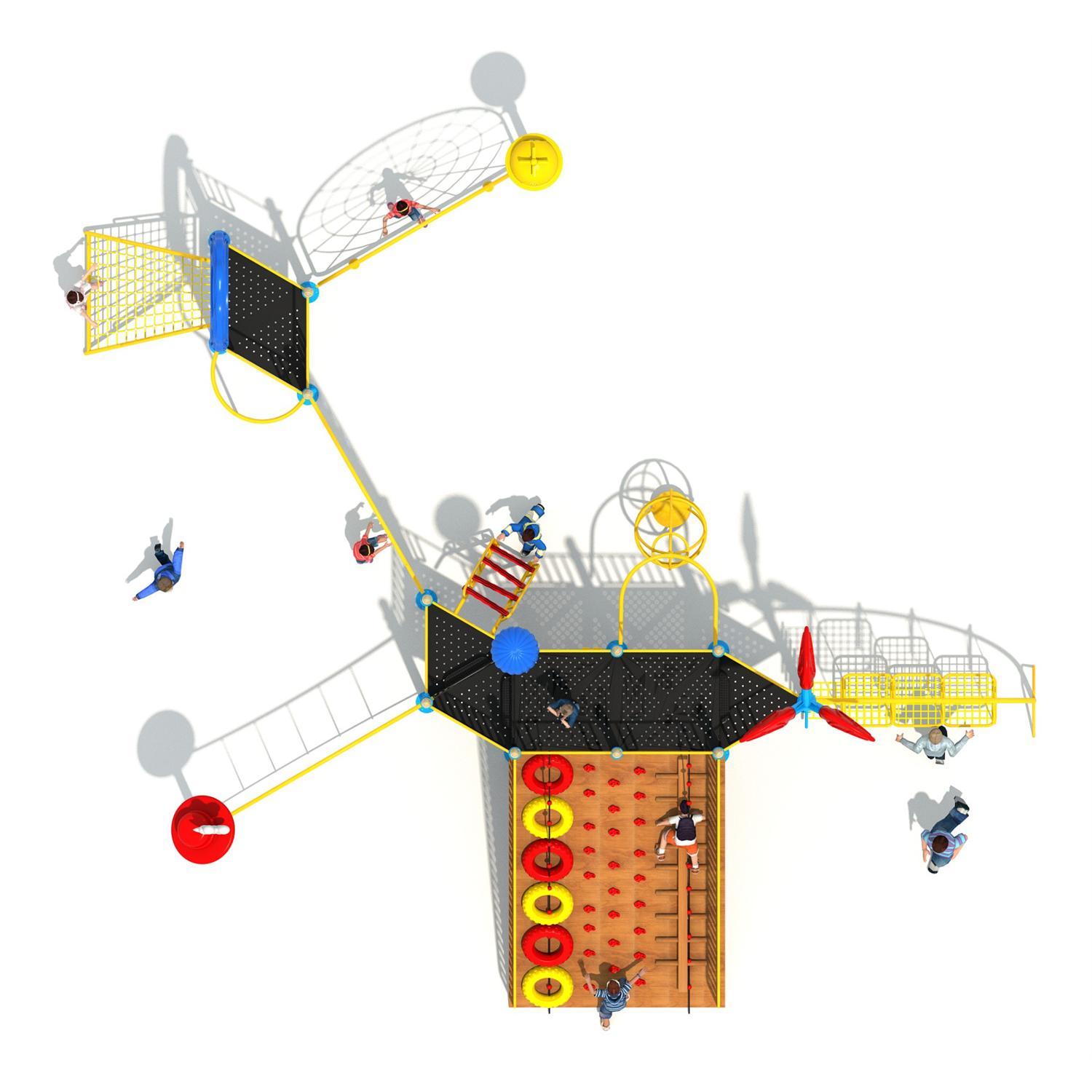 Dane urządzenia Strefa bezpieczeństwa 30,6 m2 Długość 3,49 m Szerokość 3,34 m Wysokość całkowita 3,43 m Wysokość swobodnego upadku 1,50 m Przedział wiekowy 3-14 lat Produkt zgodny z normą PN-EN 1176-1:2017-12 Dostępność części zamiennych Tak Wymiar największej części [cm] 8x8x366 Masa najcięższej części [kg] 34 kg Przestrzeń minimalna SPECYFIKACJA MATERIAŁOWA • Konstrukcja stalowa o profilu 80 x 80 mm cynkowana proszkowo i malowana proszkowo lub ze stali nierdzewnej, • Podesty, platformy, ścianki wspinaczkowe z antypoślizgowej, trwałej, wodoodpornej płyty HPL, • Dachy i osłony oraz panel muzyczny z płyty HDPE, odpornej na działanie warunków atmosferycznych, • Śruby ze stali nierdzewnej lub śruby zakryte plastikowymi kapslami, gumowe lub polipropylenowe PP, bezpieczne zaślepki na górze konstrukcji, • Drążki, drabinki i poręcze ze stali nierdzewnej, ślizg wykonany ze stali nierdzewnej z burtami z płyt HDPE, manipulatory z trwałej, wodoodpornej płyty HDPE, trwałe kamienie wspinaczkowe wykonane z żywicy poliestrowej i wypełniaczy mineralnych, • Liny stalowe wykonane w oplocie polipropylenowym, łączone trwałymi elementami z tworzywa sztucznego, stali nierdzewnej lub aluminium,