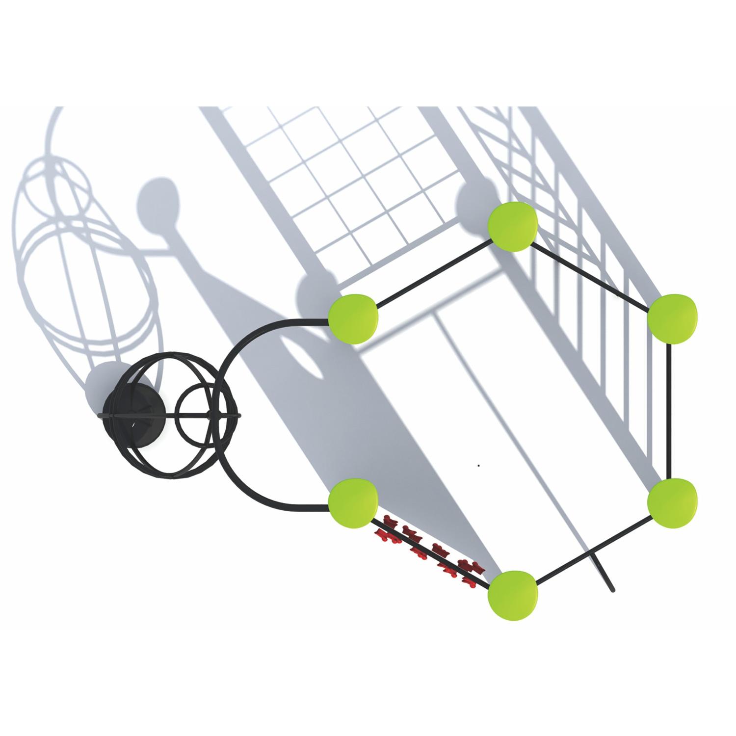 Dane urządzenia Strefa bezpieczeństwa 53,6 m2 Długość 6,42 m Szerokość 5,25 m Wysokość całkowita 2,31 m Wysokość swobodnego upadku 0,99 m Przedział wiekowy 1-8 lat Produkt zgodny z normą PN-EN 1176-1:2017-12 Dostępność części zamiennych Tak Wymiar największej części [cm] 8x8x280 Masa najcięższej części [kg] 30 kg Przestrzeń minimalna SPECYFIKACJA MATERIAŁOWA • Konstrukcja stalowa o profilu 80 x 80 mm cynkowana proszkowo i malowana proszkowo lub ze stali nierdzewnej; gumowe lub polipropylenowe PP, bezpieczne zaślepki na górze konstrukcji, • Podesty, platformy z antypoślizgowej, trwałej, wodoodpornej płyty HPL, dachy i osłony z płyty HDPE, odpornej na działanie warunków atmosferycznych, manipulatory z trwałej, wodoodpornej płyty HDPE, • Śruby ze stali nierdzewnej lub śruby zakryte plastikowymi kapslami, gumowe lub polipropylenowe PP, bezpieczne zaślepki na górze konstrukcji, • Liny stalowe wykonane w oplocie polipropylenowym, łączone trwałymi elementami z tworzywa sztucznego, stali nierdzewnej lub aluminium, • Łańcuch ze stali nierdzewnej kalibrowany, uniemożliwiający zakleszczenie palców, drążki i poręcze ze stali nierdzewnej, • Kwiatki z płyty HDPE, odpornej na działanie warunków atmosferycznych, bulaj i okno labiryntu wykonane z poliwęglanu; atestowane, bezpieczne siedzisko, instalacja łącząca dwa telefony ze stali nierdzewnej, umożliwia komunikację (instalowana pod powierzchnią gruntu), • Ksylofon wykonany z rur aluminiowych oraz z HDPE odpornego na działanie promieniowania UV, Widok drugiej strony.