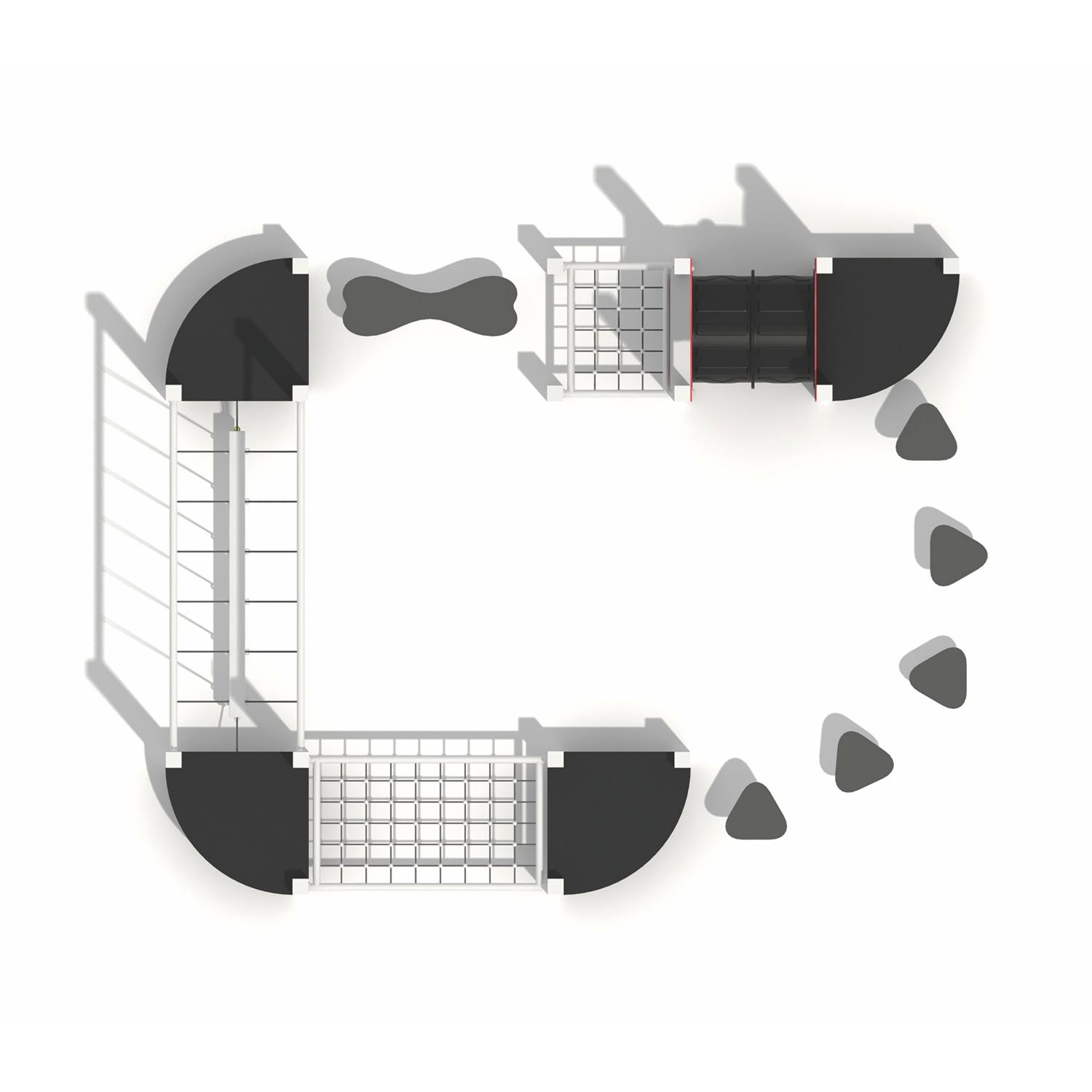 Dane urządzenia Strefa bezpieczeństwa 44,7 m2 Długość 4,51 m Szerokość 3,94 m Wysokość całkowita 3,43 m Wysokość swobodnego upadku 2,00 m Przedział wiekowy 3-14 lat Produkt zgodny z normą PN-EN 1176-1:2017-12 Dostępność części zamiennych Tak Wymiar największej części [cm] 8x8x366 Masa najcięższej części [kg] 35 Przestrzeń minimalna SPECYFIKACJA MATERIAŁOWA • Konstrukcja stalowa o profilu 80 x 80 mm cynkowana proszkowo i malowana proszkowo lub ze stali nierdzewnej, • Podesty, platformy, ścianki wspinaczkowe z antypoślizgowej, trwałej, wodoodpornej płyty HPL, • Dachy i osłony z płyty HDPE, odpornej na działanie warunków atmosferycznych, • Tunel z rury dwuściennej wykonanej z polipropylenu PP, • Drążki, drabinki i poręcze ze stali nierdzewnej, śruby ze stali nierdzewnej lub śruby zakryte plastikowymi kapslami, • Gumowe lub polipropylenowe PP, bezpieczne zaślepki na górze konstrukcji, • Zjazd strażacki wykonany ze stali nierdzewnej, ślizg wykonany ze stali nierdzewnej z burtami z płyt HDPE, • Liny stalowe wykonane w oplocie polipropylenowym, łączone trwałymi elementami z tworzywa sztucznego, stali nierdzewnej lub aluminium, • Łańcuch ze stali nierdzewnej kalibrowany, uniemożliwiający zakleszczenie palców, • Trwałe kamienie wspinaczkowe wykonane z żywicy poliestrowej i wypełniaczy mineralnych, okno wykonane z poliwęglanu.