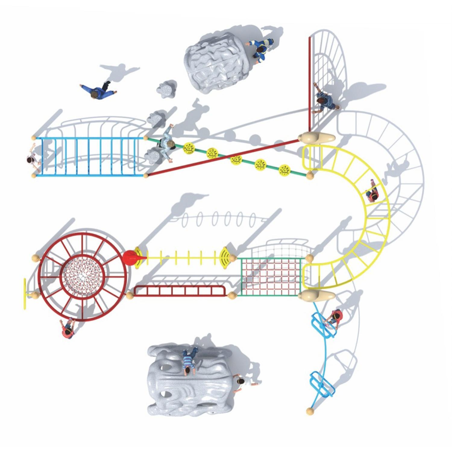 Specjalnie zaprojektowany dla dzieci w wieku od 3 do 12 lat, ten pełen zabawy obiekt do ćwiczeń fizycznych oferuje wspinaczkę. Maty do odbijania firmy Ames Balance Beams i inne, które poprawiają siłę, koordynację i wytrzymałość. Wykonane z ekologicznych, odpornych na uderzenia materiałów i o okrągłym kształcie.Certyfikat; ASTM F1487-17, ASTM E1918-12, CE, CPSC, ISO9001, 14001, 18001 itp.
