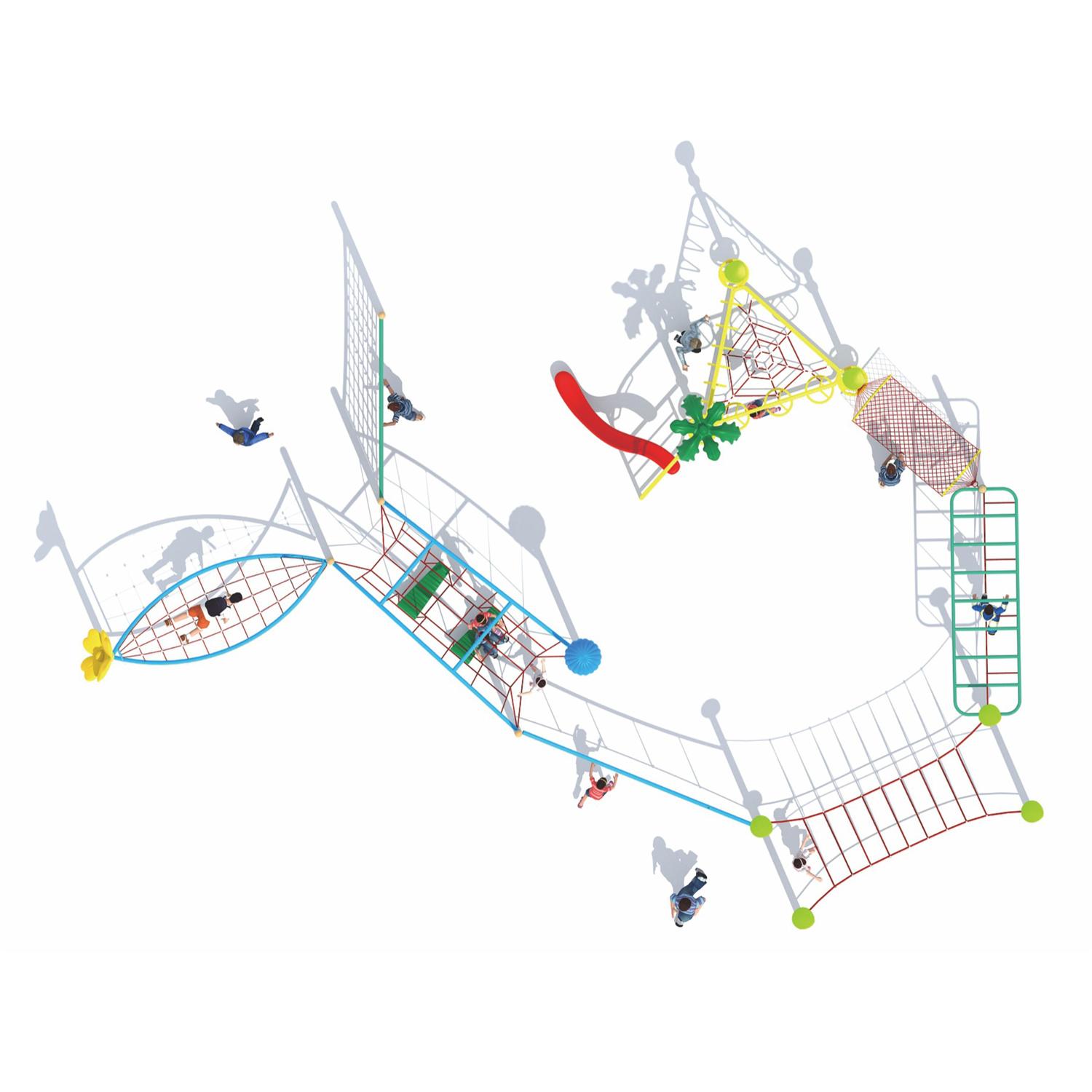 Dane urządzenia Strefa bezpieczeństwa 40,4 m2 Długość 4,99 m Szerokość 4,61 m Wysokość całkowita 3,16 m Wysokość swobodnego upadku 2,00 m Przedział wiekowy 3-14 lat Produkt zgodny z normą PN-EN 1176-1:2017-12 Dostępność części zamiennych Tak Wymiar największej części [cm] 8x8x365 Masa najcięższej części [kg] 25 Przestrzeń minimalna SPECYFIKACJA MATERIAŁOWA • Konstrukcja stalowa o profilu 80 x 80 mm cynkowana proszkowo i malowana proszkowo lub ze stali nierdzewnej, • Podesty, platformy, ścianki wspinaczkowe z antypoślizgowej, trwałej, wodoodpornej płyty HPL, • Daszki i osłony z płyty HDPE, odpornej na działanie warunków atmosferycznych, • Śruby ze stali nierdzewnej lub śruby zakryte plastikowymi kapslami, • Gumowe lub polipropylenowe PP, bezpieczne zaślepki na górze konstrukcji, • Drążki, drabinki i poręcze ze stali nierdzewnej, • Zjazd rurowy wykonany ze stali nierdzewnej, ślizg wykonany ze stali nierdzewnej z burtami z płyt HDPE, • Liny stalowe wykonane w oplocie polipropylenowym, łączone trwałymi elementami z tworzywa sztucznego, stali nierdzewnej lub aluminium, • Łańcuch ze stali nierdzewnej kalibrowany, uniemożliwiający zakleszczenie palców, • Trwałe kamienie wspinaczkowe wykonane z żywicy poliestrowej i wypełniaczy mineralnych.