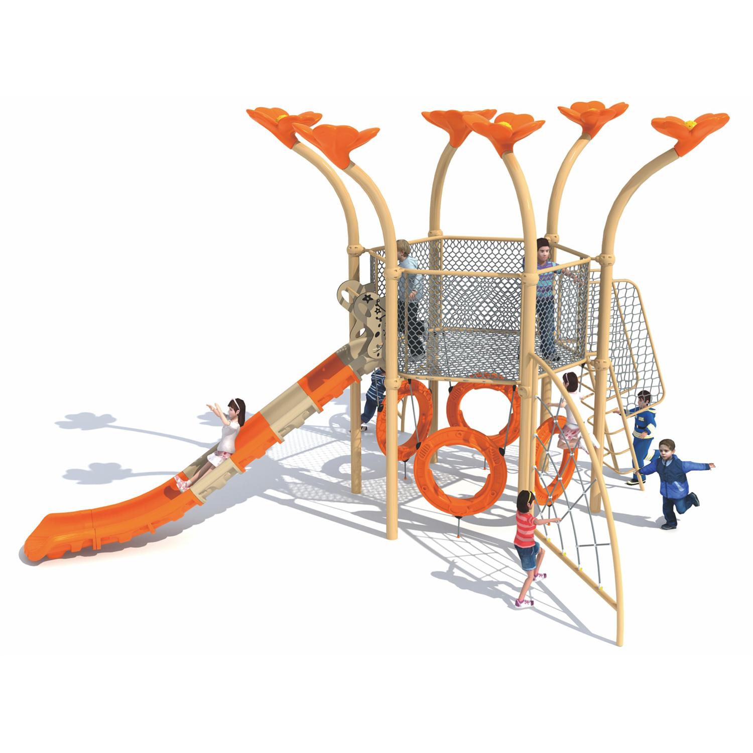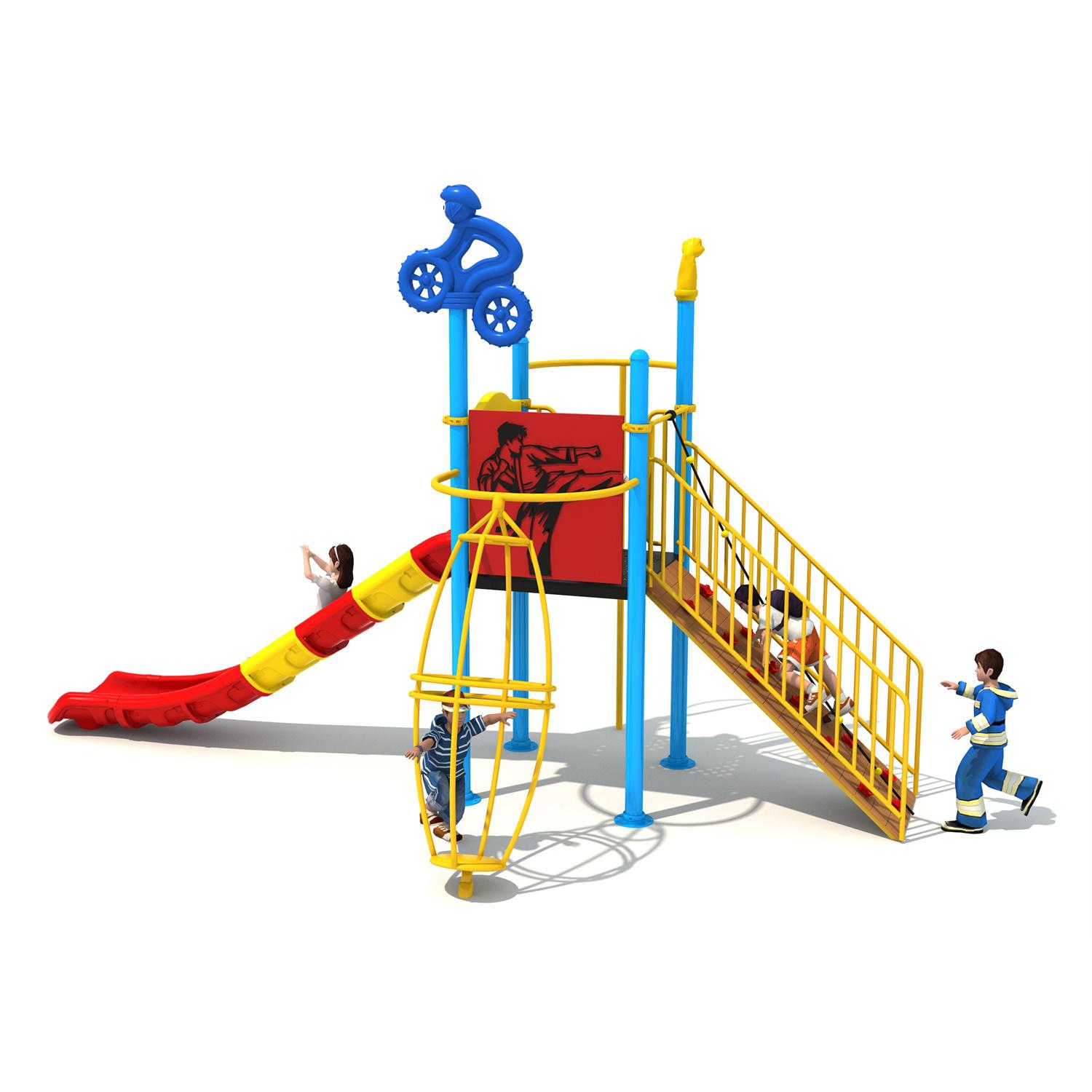 Rozmiar 1420*990*320 cm Strefa bezpieczeństwa 1240*1280 cm Wiek 3-12 lat Tworzywo 1. Części plastikowe: LLDPE, formowane rotacyjnie. 2. Części metalowe: ocynkowana rura stalowa, malowana proszkowo. 3. Platforma/Drabina schodkowa: blacha stalowa, malowana proszkowo lub PCV (Informacje o powłoce). Zalety powłoki PCV: 1) Powłoka PCV jest miękka, co zapobiega powstawaniu siniaków u dzieci. 2) W ekstremalnych warunkach pogodowych powłoka PCV zapobiega nadmiernemu nagrzewaniu się lub schładzaniu pokładu i drabiny schodkowej.