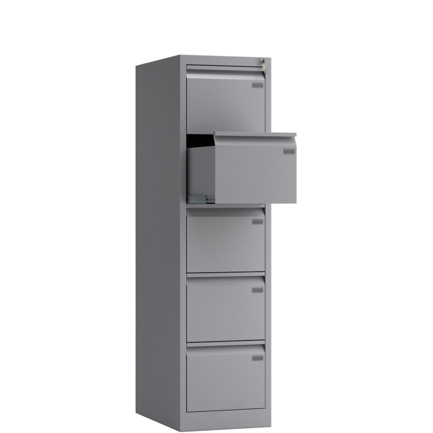 Produkowane przez nas szafy kartotekowe nie wymagają montażu, są dostarczane w całości i gotowe do użytku. Wszystkie produkowane przez nas wyroby posiadają 5 lat gwarancji. Parametry techniczne: - szafa na dokumenty z 5 szufladami - wymiary zewnętrzne: 158x43,3x60cm (WxSxG) - każda szuflada przystosowana do teczek zawieszkowych, format A4 poziomo - maksymalny wymiar przechowywanego dokumentu: 275 x 328 mm (WxS) - szuflady wysuwane w 100%, z blokadą wysuwu więcej niż 1 szuflady - nośność szuflady 50kg - zamek centralny, 2 kluczyki w komplecie