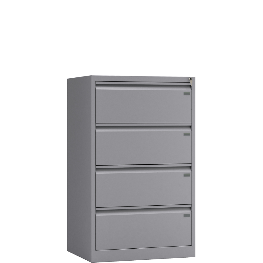 Parametry techniczne: - szafa na dokumenty z 4 szufladami - wymiary zewnętrzne: 128,5x78x60cm (WxSxG) - każda szuflada przystosowana do teczek zawieszkowych, format A4 poziomo x 2 rzędy obok siebie - maksymalny wymiar przechowywanego dokumentu: 275 x 328 mm (WxS) - szuflady wysuwane w 100%, z blokadą wysuwu więcej niż 1 szuflady - nośność szuflady 50kg - zamek centralny, 2 kluczyki w komplecie