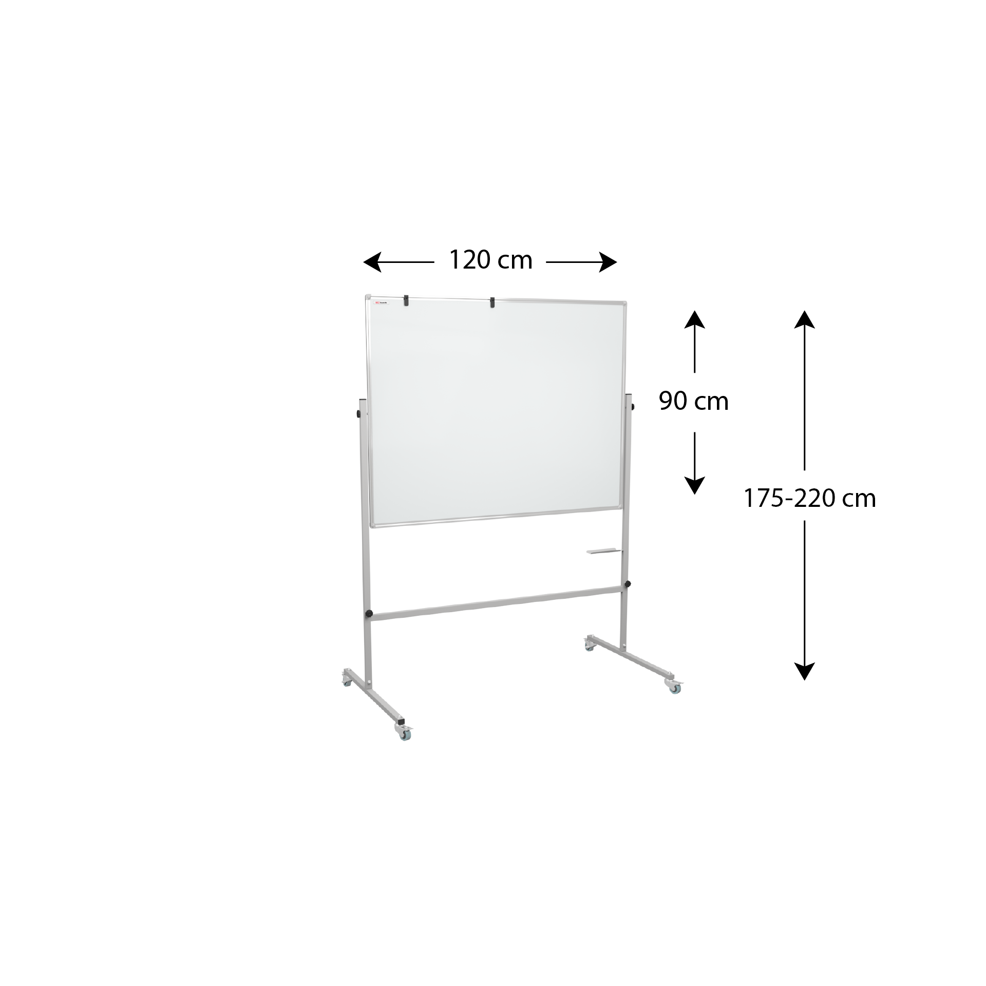Obrotowa i dwustronna Podwójna powierzchnia to jeszcze więcej miejsca na wszystkie ważne notatki. Jeśli potrzebujesz szybko wrócić do tekstu z drugiej strony, po prostu obróć tablicę. Umieszczona na stojaku na kółkach, jest też łatwa do przestawiania. Do zestawu dołączona została aluminiowa półka na markery, dzięki której uporządkujesz wszystkie przybory, aby były łatwo dostępne.Wymiary tablicy: Wysokość: 120 cm Szerokość: 150 cm Wysokość całkowita tablicy ze stojakiem: 215 cm GRATIS W zestawie z tablicą znajduje się: gąbka magnetyczna + 6 białych magnesów oraz 2 markery suchościeralne.Cena 1639,00