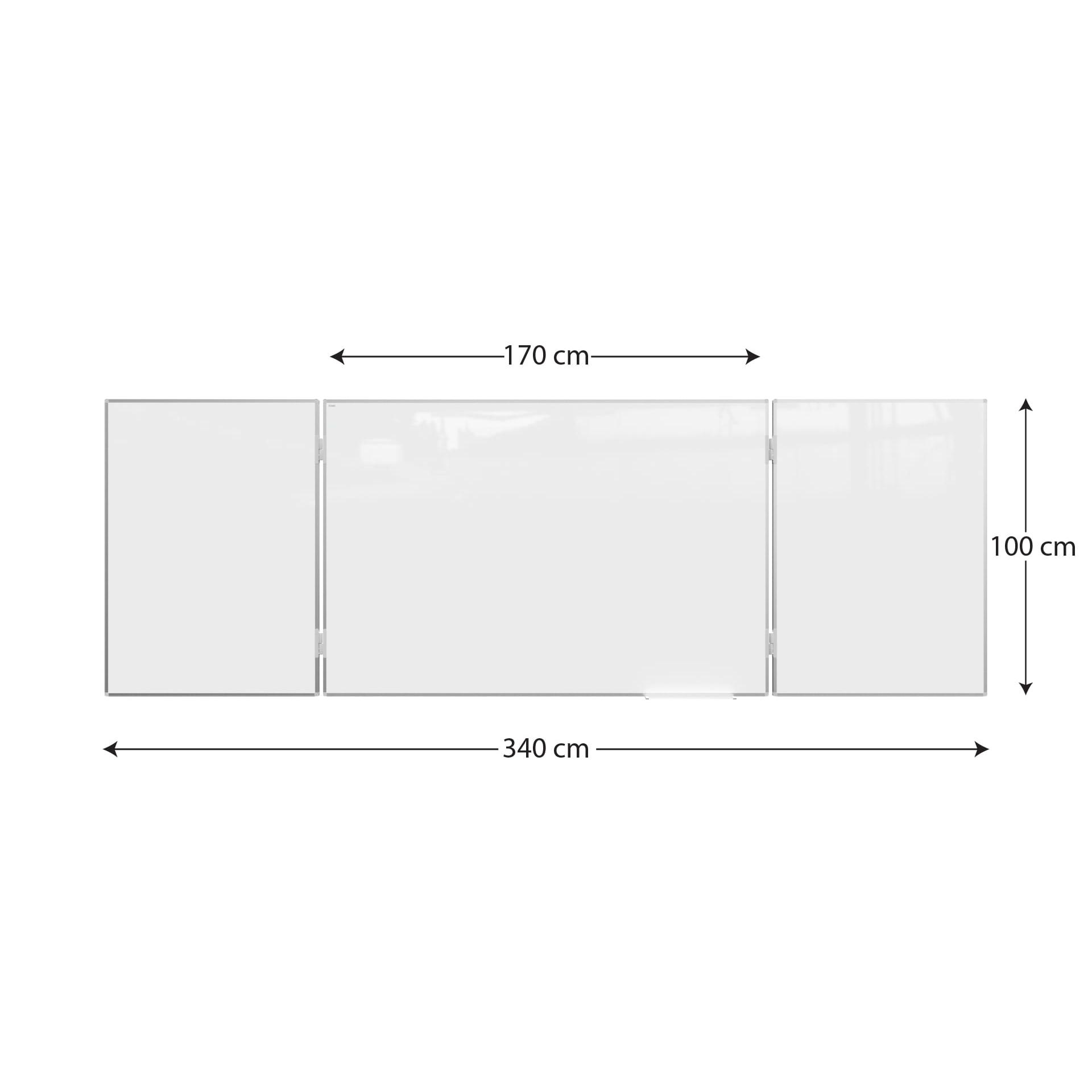 Tablica biała szkolna suchościeralna magnetyczna typu "tryptyk" 100x170 // 340 cm